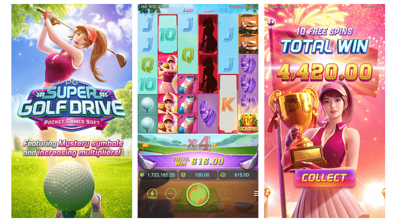 รีวิวเกมสล็อต Super Golf Drive เป็นเกมสล็อตแนวทำลายสัญลักษณ์ สล็อต PG SLOT เป็นเกมสล็อตที่คุณ จะได้พบกับความสนุกรูปแบบใหม่ Super Golf Drive และเงินรางวัล อย่างไม่มีที่สิ้นสุด จากสัญลักษณ์พิเศษต่างๆ อย่าง Mystery Symbol ที่จะสุ่มเปลี่ยนสัญลักษณ์เป็นสัญลักษณ์เดียวกันทั้งหมด ซึ่งทำให้สามารถการรันตีการจ่ายเงินรางวัลอย่างแน่นอน และเมื่อสัญลักษณ์ Mystery Symbol ถูกทำลายตั้งแต่ 3 สัญลักษณ์ขึ้นไป คุณจะได้รับตัวคูณเงินรางวัลเพิ่มขึ้นอีกด้วย ตีกอล์ฟ Super Golf Drive เกมสล็อตเกมนี้ยังมีฟีเจอร์ฟรีเกม ที่จะสามารถเก็บสะสมตัวคูณเงินรางวัล ได้จนกว่าจะจบฟีเจอร์ ทำให้คุณสามารถรับรางวัลพิเศษ ได้ง่ายๆ