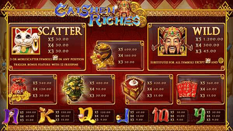 เป็นเกมสล็อต 3*5 ช่อง มีวิธีชนะเกม Winning Lines 25 แบบ สัญลักษณ์ในเกมนี้มีทั้งหมด 13 แบบ ทุกครั้งที่ชนะเกม ฟีเจอร์พิเศษ Gambler จะทำงาน (ต้องเปิดใช้งานก่อน) ให้เลือกไพ่ระหว่างสีดำหรือสีแดง หากเลือกได้ถูกต้องจะได้แต้ม x2 และเลือกต่อได้อีก 5 ครั้ง “เทพไฉ่สิ่งเอี้ย” (Caishen) เป็นสัญลักษณ์ Wild ของเกม ใช้แทนได้ทุกสัญลักษณ์ในเกม (ยกเว้น Scatter) “แมวกวัก” เป็นสัญลักษณ์ Scatter ของเกม เมื่อสุ่มได้ตั้งแต่ 3 ช่องขึ้นไป จะได้เล่นช่วงโบนัสเกมพร้อมสุ่มเกมฟรี 12 ครั้ง