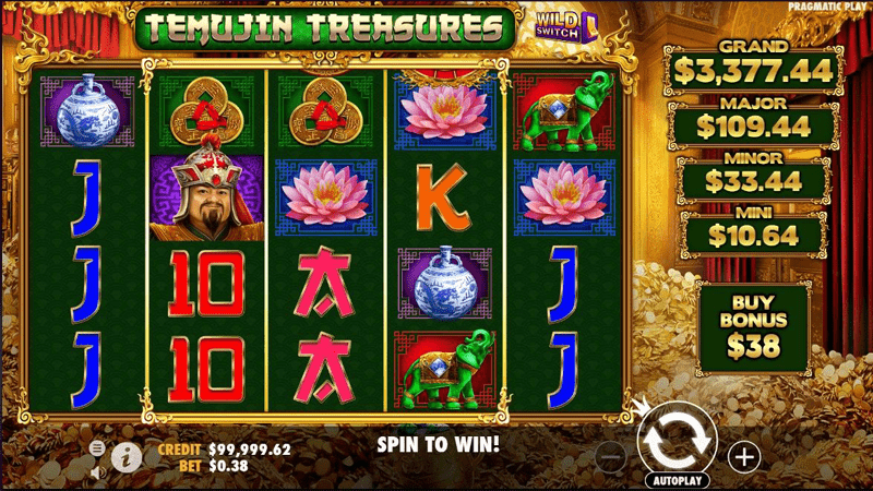 Temujin Treasures เป็นเกมสล็อตวิดีโอโดย Pragmatic Play มันมาพร้อมกับ ตาราง 5x4 ซึ่งหมายความว่าผู้เล่นจะเห็นทั้งหมด 5 วงล้อและ 4 แถว สล็อตมีคุณสมบัติตัวคูณ ฟรีสปิน และแจ็คพอต ในการเล่นเกมนี้ ผู้เล่นจะต้องกำหนดจำนวนเงินเดิมพันที่ต้องการก่อน เดิมพันในสมบัติ Temujin อยู่ระหว่าง 0.38 เหรียญถึง 190 เหรียญ เกมดังกล่าวใช้เทคโนโลยีใหม่ล่าสุดและได้รับการปรับแต่งให้เหมาะสมที่สุดสำหรับการใช้งานบนมือถือ แท็บเล็ต และเดสก์ท็อป ผู้เล่นสามารถเข้าถึง Temujin Treasure ได้ตลอดเวลาและทุกที่ RTP และความผันผวน Temujin Treasures เป็นเกมสล็อตที่มีความผันผวนสูงซึ่ง มีอัตรา RTP อยู่ที่ 96.55% ซึ่งสูงกว่าค่าเฉลี่ย การหมุนแต่ละครั้งสามารถมีช่องจ่ายเงินได้มากถึง 1,024 ช่องจ่ายเงิน และชุดค่าผสมที่ชนะจะถูกสร้างขึ้นจากวงล้อซ้ายสุดไปยังวงล้อขวาสุด รางวัลขึ้นอยู่กับสัญลักษณ์ที่ตรงกันที่ทำให้เกิดการชนะ สัญลักษณ์ในหมวดจ่ายต่ำจะให้รางวัลน้อยกว่า ในขณะที่สัญลักษณ์ในหมวดจ่ายสูงจะให้รางวัลมากกว่ามาก