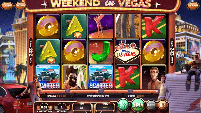 Weekend in Vegas โดย Betsoft เป็นสล็อตที่มีความผันผวนปานกลางซึ่งได้รับแรงบันดาลใจจากภาพยนตร์ยอดนิยมเรื่อง "The Hangover" เข้าร่วมกับเพื่อน 3 คนในการผจญภัยสุดมันส์เมื่อคุณหมุนวงล้อในเกม 5 รีล 3 แถวนี้ ออกแบบด้วยภาพ 3 มิติอันตระการตา มี 243 วิธีที่จะชนะ รับรางวัลมากถึง 1,210,500 เหรียญ เมื่อคุณเล่นบนเดสก์ท็อป แท็บเล็ต หรืออุปกรณ์มือถือ คุณสมบัติที่ให้ความบันเทิงแก่คุณ ได้แก่ ไวด์ สแกตเตอร์ ฟรีสปิน และรอบโบนัส อ่านต่อเพื่อค้นหาสิ่งที่คุณต้องรู้เกี่ยวกับสล็อตแมชชีน Weekend in Vegas