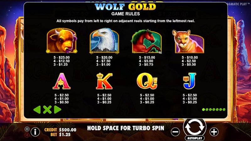 ในการเดิมพันเกมสล็อตออนไลน์ PRAGMATIC PLAY ของเกมหมาป่าทองคำผู้เล่นสามารถเลือกลงเดิมพันได้จากเงินทุนไม่มีขั้นต่ำ โดยการเริ่มเล่นนั้น ผู้เล่นจะต้องไปเปิดที่เมนูเดิมพันแล้วคลิกที่เครื่องหมายบวก หรือ ลบเพื่อทำการปรับตั้งค่าจำนวนเงินที่ใช้ในการเดิมพันตรงจุดนี้นักเดิมพันสามารถเลือกจำนวนเงินได้ตามความต้องการของผู้เล่นเอง และ ท่านสามารถปรับราคาเพิ่มลดในการเดิมพันได้ตลอดเวลาหลังจากนั้น ให้กดปุ่มหมุนเพื่อให้วงล้อทำการหมุนปุ่มอินเตอร์เฟสของเกมหลักใช้เพื่อเปิดหาข้อมูลเพิ่มเติมในหน้าข้อมูลนี้จะแสดงถึงความสามารถของอัตราจ่ายรางวัลของหมาป่าทองคำรวมถึงเงินรางวัลด้วย และ รายละเอียดอื่น ๆ มีทั้งวิธีการเล่นวิธีตั้งค่า และ คำอธิบายของ แต่ละสัญลักษณ์เพื่อให้ผู้เล่นนั้น สามารถเลือกเดิมพันได้อย่างสะดวกสบายมากยิ่งขึ้น และ มีความแม่นยำในการเล่นเพื่อคว้าชัยชนะจากการเล่นเกม สล็อต ค่าย PRAGMATIC PLAY ให้ได้มากที่สุดถ้าหากผู้เล่นคลิกไปที่แสดงเครดิต และ การเดิมพันของท่านจะแสดงยอดเงินในปัจจุบันของท่าน และ จำนวนเงินในการเดิมพัน โดยแสดงออกมาในหน่วยของเหรียญแลกเงินสด นอกจากนี้ในปุ่มของออโต้เพลย์ หรือ ออโต้สปินจะสามารถช่วยเหลือในการหมุนวงล้อให้ท่านหมุนได้ โดยอัตโนมัติ โดยที่ท่านไม่ต้องเลือกทำการหนุนล้อด้วยตัวเอง และ ยังสามารถช่วยให้ประหยัดเวลาได้อีกด้วยในการกดออโต้สปินนี้ระบบจะทำการหมุนเอง โดยอัตโนมัติ โดยที่ผู้เล่นจะต้องกำหนดราคาเงินจ่ายใน แต่ละรอบของการเดิมพันไว้เสียก่อนแล้วจึงค่อยกดออโต้สปินจากนั้น จะทำการหมุนเอง และ รางวัลก็จะถูกเก็บเข้าสู่กระเป๋าของท่านไปเรื่อย ๆ และ ถ้าหากว่าท่านต้องการจะหยุดคำสั่งออโต้สปินให้กลับไปกดที่ออโต้สปินอีกครั้งเพื่อทำการหยุดคำสั่งนั้น ก็จะหยุดลง