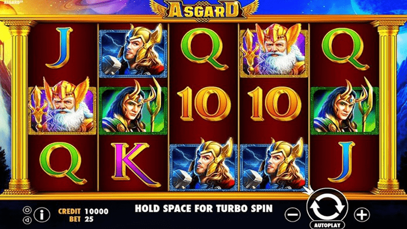 สำหรับเกม Asgard นั้นเป็นสล็อตที่มี่รูปแบบการเล่นแบบทั่วไป ซึ่งเป็นสล็อตแบบ 5 คอลัมน์ 3 แถว หรือ 5 x 3 แถว มาพร้อมกับเพย์ไลน์ในการเล่น 25 รูปแบบ ไม่สามารถปรับเปลี่ยรูปแบบในการเล่นได้ โดยเกมนี้มาพร้อมกับตัวช่วยอย่าง Wild & Scatter และฟีเจอร์ฟรีสปิน (Free Spin) ภาพสัญลักษณ์ Wild ภายในเกมจะเป็นภาพ เมืองแอสการ์ทสีทอง ซึ่งจะปรากฏในทุกๆ รีลการเล่น และสามารถทดแทนภาพสัญลักษณ์อื่นๆ ได้ ยกเว้น Bonus โดยมีรางวัลการเล่นหากได้สุ่มได้ 3 x 125, 4 x 500 และ 5 x 2500 ภาพสัญลักษณ์ Bonus ภายในเกมจะเป็นภาพสัญลักษณ์หน้ากากสีฟ้า โดยหากสุ่มได้ 3 ภาพหรือมากกว่าจะได้เข้าสู่โบนัสเกมในการเล่น โดยจะปรากฎในรีลที่ 2 ,3 และ 4 เท่านั้นในเกมนี้ด้วยฟีเจอร์การทับซ้อนและการแทนที่สัญลักษณ์ในเกมนั้นจะทำให้ผู้เล่นได้รับโบนัสมากกว่า x 50 เท่าของการเดิมพันเลยทีเดียว