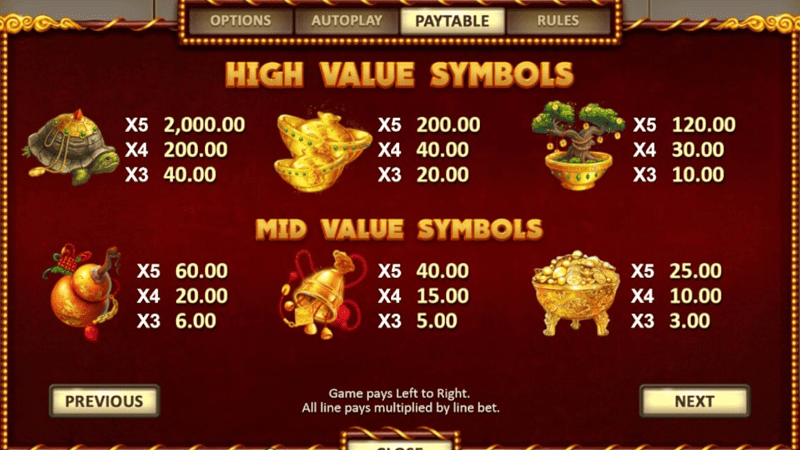วิดีโอสล็อตออนไลน์ Caishen's Arrival มี 5 วงล้อและ 25 ไลน์ ซึ่งจะเปิดใช้งานตามค่าเริ่มต้นเสมอ ผู้เล่นไม่สามารถเปลี่ยนจำนวนสายที่ใช้งานอยู่ได้ สล็อตยอมรับการเดิมพันในช่วงตั้งแต่ห้าเซ็นต์ถึงห้ายูโรต่อรอบ สัญลักษณ์บนหน้าจอสร้าง ตารางขนาด 5x3 ตัวเลือกการเล่นเกมที่มีให้เลือก ได้แก่ ไอคอนพื้นฐานในระดับต่างๆ, Wilds, Scatters, ฟรีสปิน, ฟีเจอร์การพนัน และการจ่ายเงินรางวัล การรวมกันสามารถเกิดขึ้นได้จากสาม, สี่หรือห้าองค์ประกอบเดียวกัน ซึ่งอยู่ติดกันที่หนึ่งในบรรทัดที่ใช้งานอยู่ โดยเริ่มจากวงล้อซ้ายแรก สามารถเชื่อมโยงหลายสายได้ในผลลัพธ์ของรอบเดียว การชนะขึ้นอยู่กับการเดิมพันและดัชนีพิเศษที่กำหนดโดยกฎสำหรับชุดค่าผสมที่เป็นไปได้แต่ละชุด ผู้เล่นสามารถพยายามเพิ่มชัยชนะเป็นสองเท่า การจะทำแบบนั้นได้นั้นพวกเขาจะต้องเดาด้านข้างของเหรียญ คุณสามารถเดิมพันทั้งหมดหรือครึ่งหนึ่งได้ โปรดอ่านเกี่ยวกับประเภทของสัญลักษณ์ ตัวเลือกโบนัส และคุณสมบัติอื่น ๆ แม้ว่าคุณจะสามารถเล่นสล็อต Caishen's Arrival ได้ฟรี แต่ก็สามารถพบได้ในคาสิโนออนไลน์ที่ทราบกันว่าให้ผู้เล่นได้เงินจริง เกมดังกล่าวมี ตารางขนาด 5x3 และ 25 เพย์ไลน์ เดิมพันขั้นต่ำที่คุณสามารถทำได้ในเกมนี้คือ 0.05 ต่อการหมุน เดิมพันสูงสุดที่คุณสามารถทำได้ในเกมนี้คือ 5.00 RTP ของสล็อตแมชชีนมาถึงของ Caishen อยู่ที่ 95.74% ซึ่งหมายความว่ามีความผันผวนสูง อย่างไรก็ตาม มันยังให้รางวัลที่ใหญ่กว่าปกติเล็กน้อยอีกด้วย ก่อนที่คุณจะเริ่มเล่นเกม ตรวจสอบให้แน่ใจว่าคุณเล่นการพนันอย่างมีความรับผิดชอบและปลอดภัย Betsoft ปฏิบัติตามกฎระเบียบทั้งหมดที่เกี่ยวข้องกับการเล่นเกมที่ยุติธรรม ดังนั้นคุณจึงมั่นใจได้ว่าเกมทั้งหมดของพวกเขาจะทำให้คุณปลอดภัย
