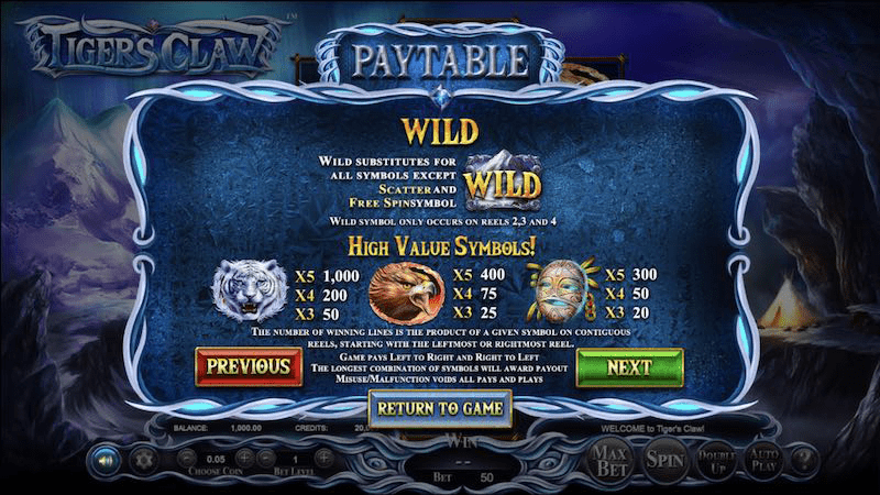 Tiger's Claw เป็นสล็อตที่มี 5 วงล้อ และ 720 วิธีในการชนะ ผู้ที่เดิมพันด้วยเงินมากหรือน้อยในเกมด้วย การเดิมพันที่แตกต่างกันเริ่มต้นที่ .50 ต่อการหมุน การใช้เสือไซบีเรียที่ได้รับความนิยมและค่อนข้างเป็นตำนานเป็นธีมหลัก ผู้รักสัตว์และนักเล่นเกมจะเพลิดเพลินไปกับเกมโบกี้ที่สวยงามตระการตาเกมนี้ ฟีเจอร์ Wilds และโบนัสสองเท่าเพิ่มความตื่นเต้นในการเพิ่มชัยชนะบนเครื่องโบกี้แบบ 5 รีล 720 วิธี เพลงประกอบมีความลึกลับ แต่ชวนให้นึกถึงการบินผ่านอวกาศอันกว้างใหญ่ ด้านหน้าภูเขาลึกลับ ภูมิทัศน์เป็นสนามเด็กเล่นหลัก ซึ่งตามใจฉัน ต้องใช้ลายเพชร 3-4-5-4-3 ที่ใช้น้อย โฆษณาและการตั้งค่าอยู่ใต้สนามแข่งขันและมีความเหมาะสมตามธีม Tiger's Claw สนุกที่สุดบนจอใหญ่แบบเต็มจออยู่แล้ว โดยรวมแล้วมีบรรยากาศที่ยอดเยี่ยมมาก โดยมีรายละเอียดเล็กๆ น้อยๆ มากมายและแอนิเมชั่นที่ยอดเยี่ยม นอกจากนี้ยังรองรับมือถืออีกด้วย สล็อตนี้สนุกมาก มันทำงานโดยตรงในเบราว์เซอร์โดยไม่ต้องดาวน์โหลด คุณสามารถเล่น Tiger's Claw ได้อย่าง ง่ายดายทุกที่ทุกเวลา หากต้องการเวลาเล่นเกมมากขึ้น