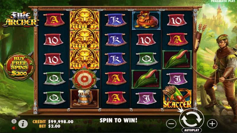 เหล่าชาวเมือง ที่ถูกเอารัดเอาเปรียบ จากเหล่าบรรดาเศรษฐี และนักการเมืองของพวกเขา จนทำให้นักธนูไฟ ต้องยื่นมือเข้ามาช่วย เขาปลอมตัวเป็นโจรลึกลับ ทำการปล้นเงินของเศรษฐี ที่ได้โกงภาษีของชาวเมือง แล้วนำมาแจกจ่าย ให้กับคนที่โดนโกงไป และเขายังได้ปกป้องชาวเมือง จากกลุ่มคนที่จะเข้ามาทำร้ายชาวเมือง ทำให้เมืองแห่งนี้ มีแต่ความสงบสุข และคุณภาพของชาวเมือง ดีขึ้นเรื่อยๆอีกด้วย ลองเล่นสล็อต Fire Archer เป็นเกมสล็อตที่มี 5 รีล และมี 5 แถว มาพร้อมฟีเจอร์ Free Spins ซึ่งจะมีสัญลักษณ์ Super Wild อยู่บนกระดาน จนกว่าจะจบฟีเจอร์ Free Spins โดยสัญลักษณ์ Super Wild นี้ จะเคลื่อนที่ไปบนกระดานแบบสุ่ม และสุ่มเพิ่มสัญลักษณ์ Wild ให้ปรากฎบนกระดาน ช่วยให้คุณชนะได้ง่ายขึ้นคุณจะเข้าสู่ฟีเจอร์ Free Sping ของเกม Fire ArcherPP ได้ก็เมื่อ สัญลักษณ์ Scatter ปรากฎบนกระดาน 3 สัญลักษณ์ และได้รับหมุนฟรี 5 ครั้ง ภายในฟีเจอร์ Free Spins Fire Archer ค่ายไหน สัญลักษณ์ Scatter ปรากฎบนกระดาน 2 สัญลักษณ์ เลวลของ สัญลักษณ์ Super Wild จะเพิ่มขึ้นอีก 1 และสุ่มมอบสปินฟรี 1, 2 หรือ 3 ครั้ง