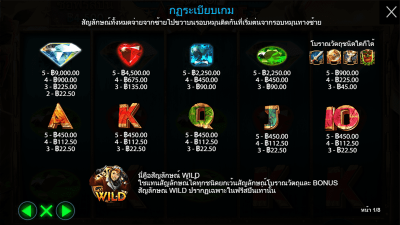 สัญลักษณ์ Wild เป็นสัญลักษณ์รูป สาวนักผจญภัย ซึ่งจะสามารถใช้แทนได้ทุกสัญลักษณ์ ยกเว้น สัญลักษณ์ Scatter เพิ่มอัตราการชนะรางวัลและแจ็คพอร์ตต่าง ๆ มากขึ้น สัญลักษณ์พิเศษน้ำเพชร เป็นสัญลักษณ์ที่ให้อัตราตอบแทนสูง เป็นอันดับที่ 1 โดยให้อัตราการจ่ายตั้งแต่ 2 – 5 สัญลักษณ์ ให้อัตราการเดิมพันมากถึง 0.50x – 200x เท่า สัญลักษณ์พิเศษหัวใจ เป็นสัญลักษณ์ที่ให้อัตราตอบแทนสูง เป็นอันดับที่ 2 โดยให้อัตราการจ่ายตั้งแต่ 3 – 5 สัญลักษณ์ ให้อัตราการเดิมพันมากถึง 3x – 100x เท่า