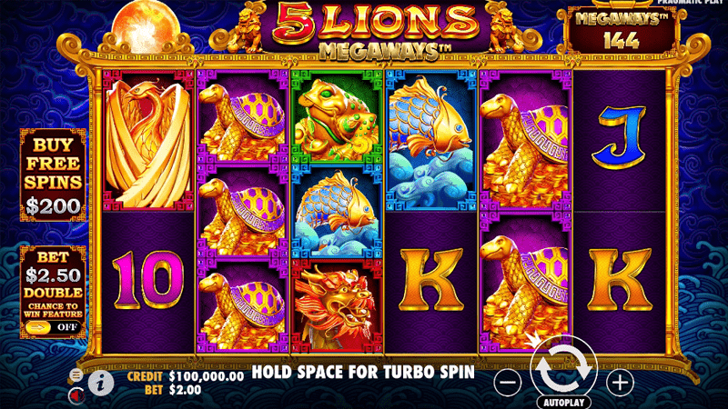 Pragmatic Play ได้ออกแบบสล็อต 5 Lions Megawaysโดยใช้เอ็นจิ้น Megaways จาก Big Time Gaming ต้องขอบคุณ Megaways ที่ทำให้จำนวนสัญลักษณ์ที่สามารถตกลงบนแต่ละวงล้อจะเปลี่ยนแปลงไปทุกครั้งที่หมุน วงล้อที่ 1 และ 6 สามารถมีสัญลักษณ์ได้ระหว่าง 2 ถึง 7 สัญลักษณ์ ในขณะที่วงล้อที่ 2, 3, 4 และ 5 สามารถมีได้ถึง 8 สัญลักษณ์ ยิ่งคุณมีสัญลักษณ์มากเท่าใด ช่องทางในการชนะก็จะยิ่งเพิ่มมากขึ้นเท่านั้น โดยรวมแล้วจำนวนวิธีที่จะชนะสามารถ เข้าถึง 200,704 สำหรับรายละเอียดเพิ่มเติม โปรดอ่านภาพรวม Megaways ของเรา ซึ่งเราจะอธิบายวิธีการทำงานของกลไกนี้ คุณสามารถเข้าร่วมสิงโตผู้ทรงพลังได้ในระดับเงินเดิมพัน ตั้งแต่ 0.20 ถึง 125 ปอนด์ต่อการหมุนหนึ่งครั้ง สิ่งนี้ทำให้คุณมีพื้นที่เหลือเฟือในการวางแผนงบประมาณของคุณและเลือกเดิมพันที่เหมาะสมกับความต้องการของคุณ โดยรวมแล้ว คุณสามารถชนะเงินเดิมพัน 5,000x จากการหมุนครั้งเดียว ลงจอดอย่างน้อย 3 สัญลักษณ์ที่ตรงกันบนเพย์ไลน์ที่ใช้งานอยู่ และคุณจะได้รับชัยชนะ สล็อต 5 Lions Megaways เต็มไปด้วยคุณสมบัติมากมายที่มอบประสบการณ์รีลที่น่าดึงดูด ซึ่งรวมถึง Tumbling Reels, Wild Multipliers และ Free Spins แต่เราจะพูดถึงพวกเขาเพิ่มเติมด้านล่างในส่วนโบนัส สำหรับตอนนี้ เรามาสำรวจรูปลักษณ์ของสล็อต 5 Lions Megaways กันดีกว่า